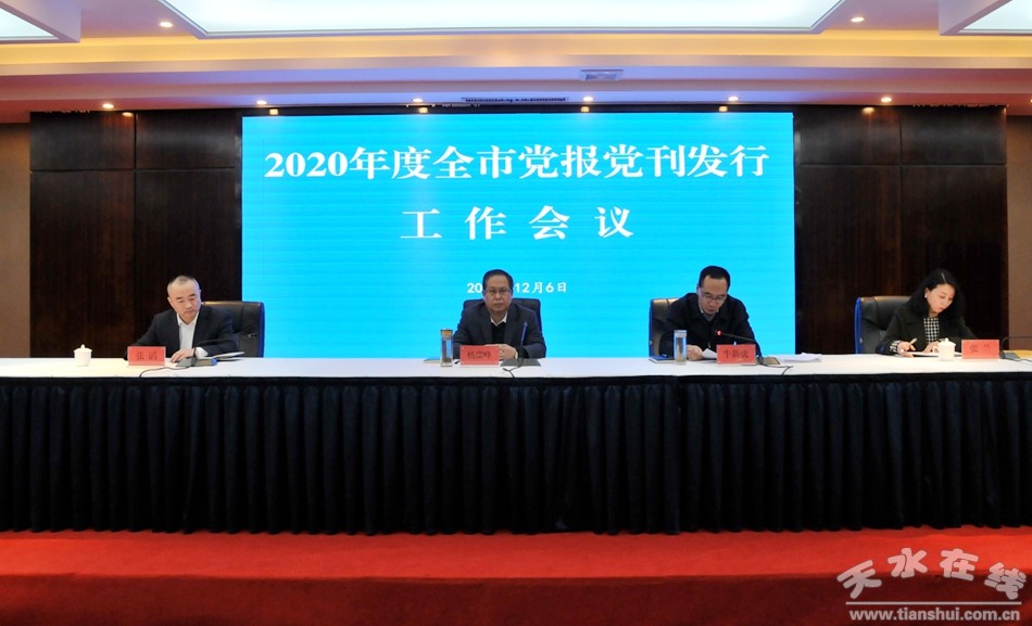 12月6日,2020年度全市黨報黨刊發(fā)行工作會議在天水賓館召開。會議貫徹落實省委宣傳部2020年度黨報黨刊發(fā)行工作視頻會議要求,對做好2020年度全市重點黨報黨刊發(fā)行和規(guī)范報刊發(fā)行秩序工作進行了安排部署。