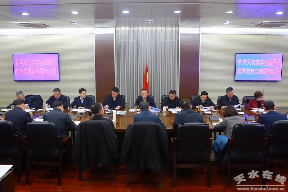 12月19日上午,天水市委全面深化改革委員會召開第四次會議。市委書記、市委全面深化改革委員會主任王銳主持會議并講話。他強(qiáng)調(diào),全市各級各部門要深入學(xué)習(xí)貫徹黨的十九屆四中全會精神和中央經(jīng)濟(jì)工作會議精神,對標(biāo)到2020年在重要領(lǐng)域和關(guān)鍵環(huán)節(jié)改革上取得決定性成果,加快補(bǔ)短板、強(qiáng)弱項,鞏固和深化在解決體制性障礙、機(jī)制性梗阻、政策性創(chuàng)新方面取得的改革成果,加強(qiáng)改革系統(tǒng)集成、協(xié)同高效,推動全市經(jīng)濟(jì)社會高質(zhì)量發(fā)展。