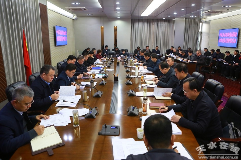 會議傳達(dá)學(xué)習(xí)了中央全面深化改革委員會第十一次會議和省委全面深化改革委員會第五次會議精神,審議了《天水市關(guān)于全面深入持久開展民族團(tuán)結(jié)進(jìn)步創(chuàng)建工作鑄牢中華民族共同體意識的實(shí)施方案》《關(guān)于2019年全市全面深化改革工作督察情況的報告》《關(guān)于2019年全市全面深化改革工作報告》,對明年改革工作進(jìn)行了安排部署。