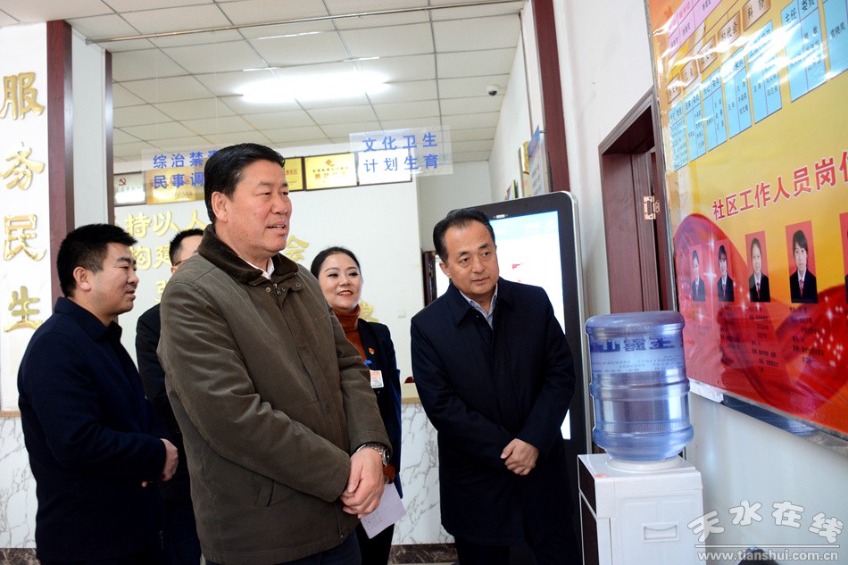 (王軍在麥積區(qū)道北街道濱河路社區(qū)檢查指導(dǎo)基層黨建工作)
