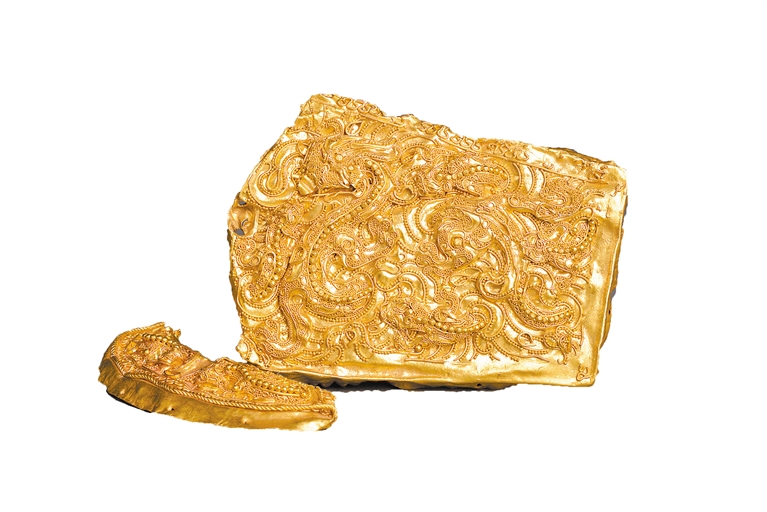 東漢 金掐絲焊珠蟠螭紋帶扣
