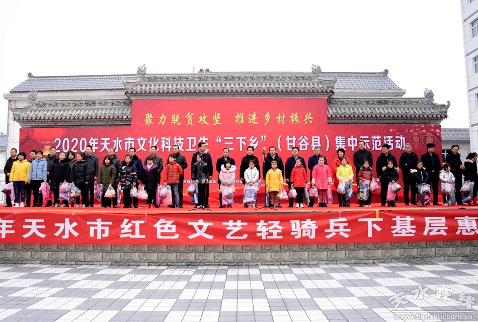 1月10日,由天水市委宣傳部牽頭,市直15個部門共同參與的2020年天水市文化科技衛(wèi)生“三下鄉(xiāng)”集中示范活動在甘谷縣六峰鎮(zhèn)舉行。