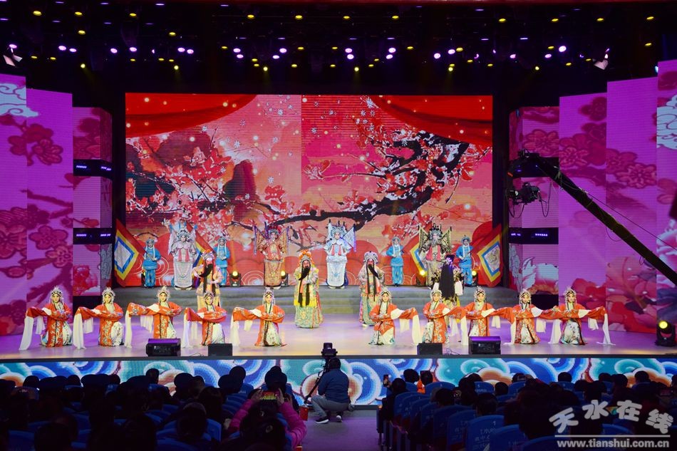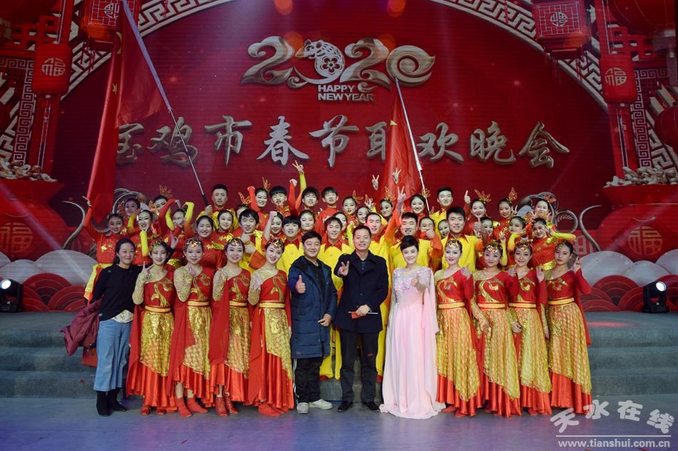 天水在線寶雞報道 1月17日晚,2020年寶雞市春節(jié)聯(lián)歡晚會在寶雞廣電傳媒大廈正式錄制,天水市歌舞藝術(shù)研究中心和天水市西秦腔研究院近百名演職人員受邀參加了演出。中共寶雞市委副書記吳鐵,市委常委、常務(wù)副市長劉榮賢及近千名觀眾現(xiàn)場觀看了演出。