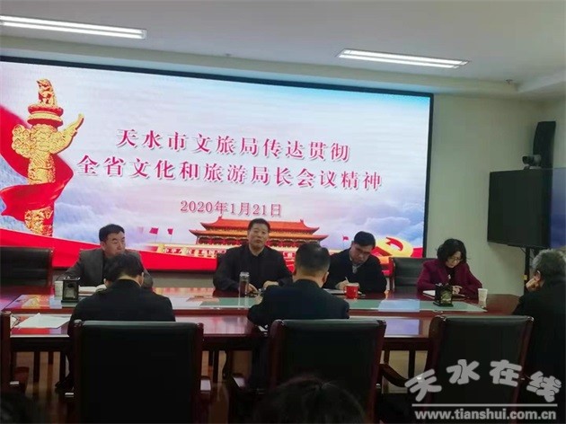 1月21日上午,天水市文化和旅游局召開專題會議,黨組書記、局長李玉進第一時間傳達貫徹1月20日結束的全省文化和旅游局長會議精神,安排部署2020年重點工作。局黨組在家成員、各科室長參加了會議。