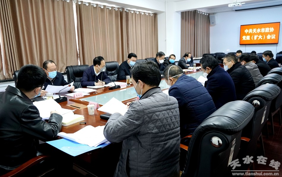 2月3日,天水市政協(xié)黨組書記、主席趙衛(wèi)東主持召開市政協(xié)黨組(擴大)會議。市政協(xié)黨組成員蘇定武、郭明興、郭世文、賈忠慧出席會議,市政協(xié)副主席、市民進主委屈光平列席會議。