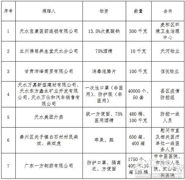 天水市紅十字會接收抗擊新冠肺炎疫情