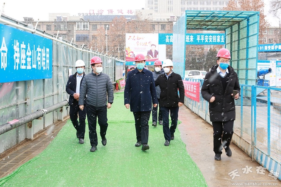 當(dāng)天上午,冒著紛紛揚揚的瑞雪,王軍一行先后來到三陽川城市隧道、天水萬達(dá)廣場、岷山生態(tài)公園等項目施工現(xiàn)場,聽取了項目單位疫情防控和開工復(fù)工有關(guān)情況匯報,就當(dāng)前項目建設(shè)中遇到的用工、原材料供應(yīng)等困難和問題進(jìn)行了現(xiàn)場辦公。