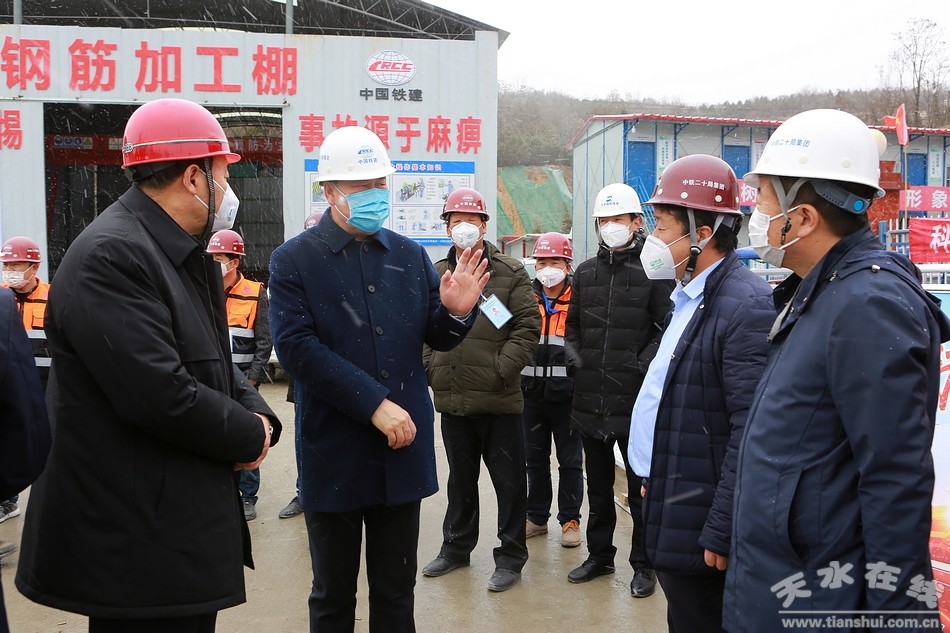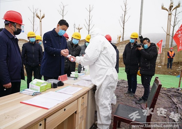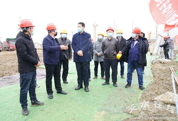 2月20日上午,天水市委副書記、市長王軍一行現(xiàn)場檢查指導(dǎo)天水市城投公司建設(shè)項(xiàng)目疫情防控及復(fù)工復(fù)產(chǎn)情況。市政協(xié)副主席、市政府秘書長王祥林,市城投公司黨委書記、董事長、總經(jīng)理張憲泉及相關(guān)項(xiàng)目負(fù)責(zé)人陪同檢查。