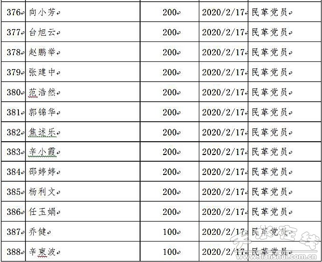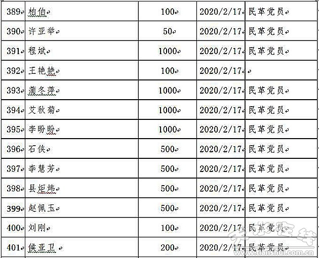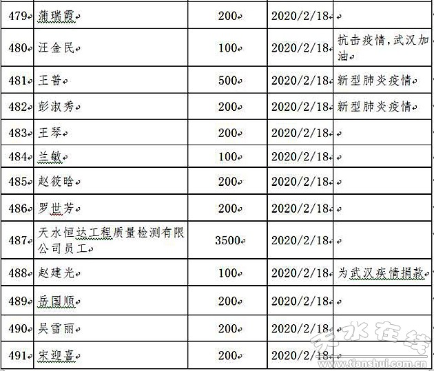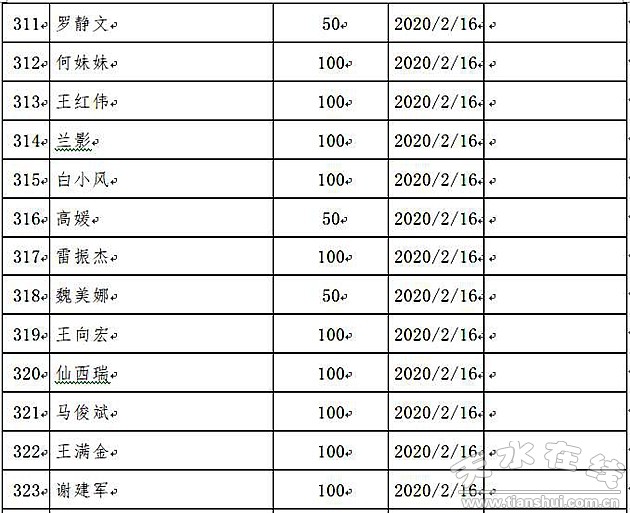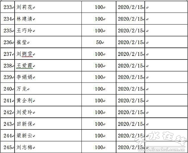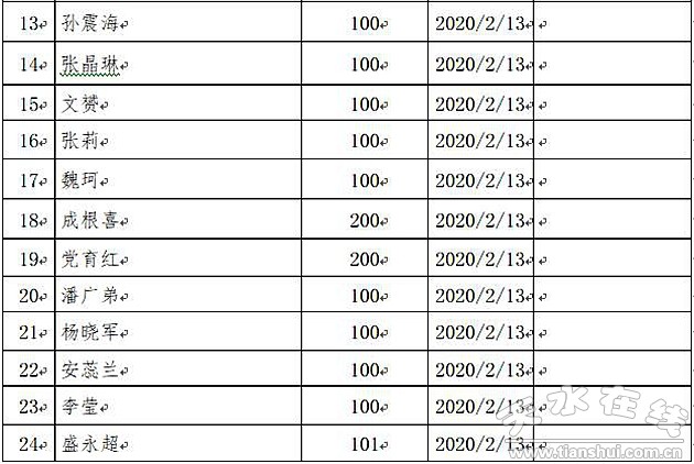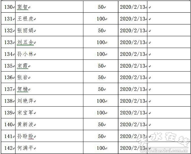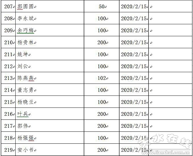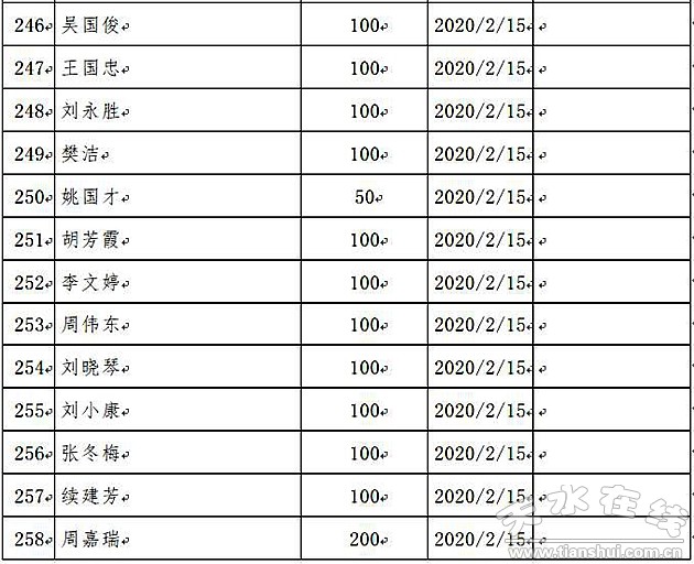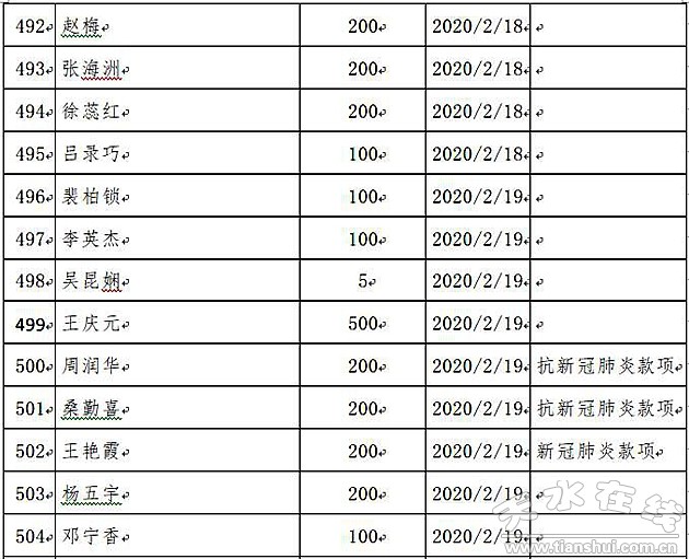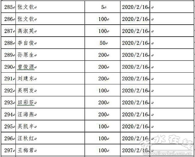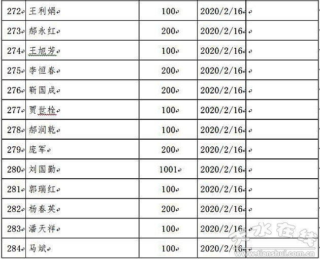 3.浙商銀行天水分行和浙商銀行天水分行員工捐款128800元為定向捐款,其中:407醫(yī)院6萬元、秦州區(qū)人民醫(yī)院6.88萬元;甘肅睿陽科技有限公司(范軍強(qiáng))捐款12000元定向用于天水市疾控中心;李彥林捐款2000元定向用于市中醫(yī)院兒科;香山觀部分信士捐款1901元定向用于武漢疫區(qū),撥付給武漢市慈善總會。
