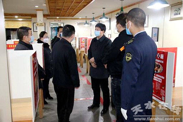 王宏瑋一行先后深入橋南建材市場優(yōu)溢佳牛肉面,天水火車站附近舌尖尖牛肉面、魏家涼皮、骨里香熟食等地,重點就餐飲場所營業(yè)后落實體溫監(jiān)測、信息登記、分桌就餐等疫情防控措施以及食品安全情況進行了檢查,并前往麥積區(qū)市場監(jiān)管局看望慰問一線干部職工。