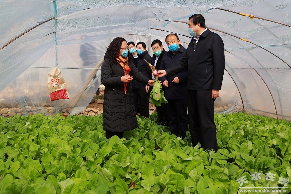 趙衛(wèi)東一路走一路看,走進(jìn)武山縣大南河流域蔬菜標(biāo)準(zhǔn)化生產(chǎn)基地、四門西梁咀兒村全膜玉米示范點(diǎn)、西梁山地高效節(jié)水循環(huán)農(nóng)業(yè)示范區(qū)產(chǎn)業(yè)項(xiàng)目現(xiàn)場(chǎng),甘谷縣磐安鎮(zhèn)五坪精細(xì)菜生產(chǎn)基地、甘谷縣早春地膜馬鈴薯基地、安遠(yuǎn)鎮(zhèn)鞏川反季節(jié)櫻桃示范園果蔬大棚、田間地頭,詢問農(nóng)戶果蔬種植、銷售和春耕備耕情況,當(dāng)?shù)弥窝滓咔閷?duì)蔬菜種植、銷售、價(jià)格無影響,并能及時(shí)春耕備耕時(shí),趙衛(wèi)東特別高興,他要求各級(jí)各相關(guān)部門要全面落實(shí)惠農(nóng)政策,加強(qiáng)農(nóng)技培訓(xùn),強(qiáng)化田間管理指導(dǎo),引導(dǎo)農(nóng)民搶抓農(nóng)時(shí),積極開展春耕備耕生產(chǎn),為今年農(nóng)業(yè)豐收打好基礎(chǔ)。