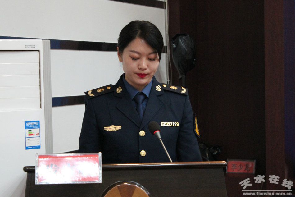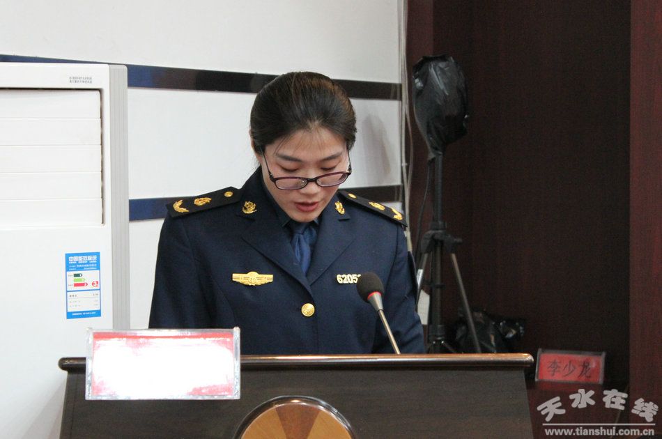 會(huì)議期間,2名一線執(zhí)法隊(duì)員分別代表秦州、麥積兩區(qū)全體執(zhí)法人員作了表態(tài)發(fā)言。
