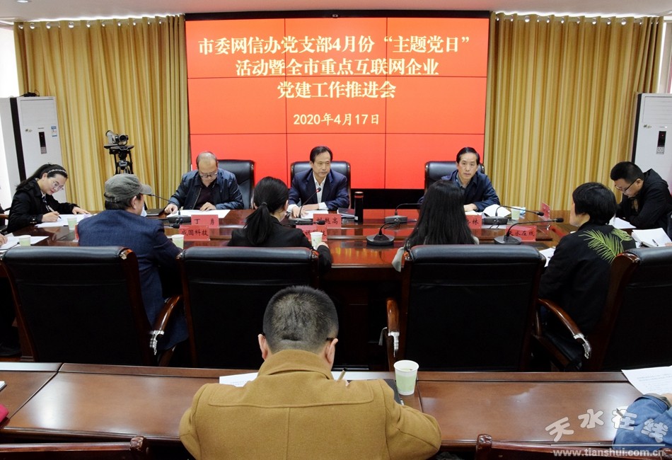 4月17日,中共天水市委網(wǎng)信辦開展了4月份主題黨日活動,并召開全市重點互聯(lián)網(wǎng)企業(yè)黨建工作推進會,市委宣傳部副部長、市委網(wǎng)信辦主任、黨支部書記,天水市互聯(lián)網(wǎng)企業(yè)黨工委書記劉越高主持會議,并向與會人員講授黨課。