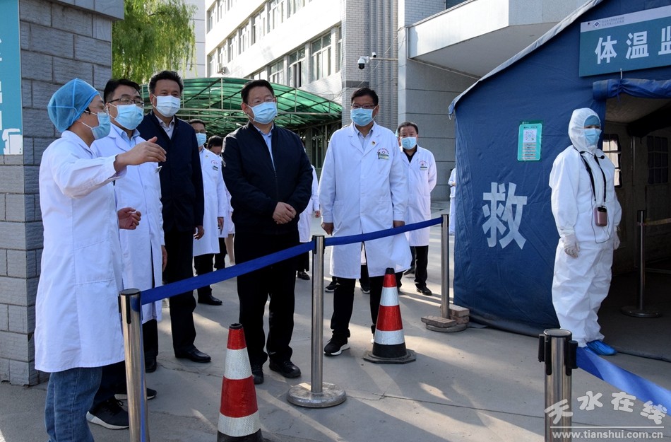 4月30日,天水市委常委、宣傳部部長張建杰帶領(lǐng)市衛(wèi)生健康委負(fù)責(zé)人實地檢查全市醫(yī)療機(jī)構(gòu)新冠肺炎院感防控工作。