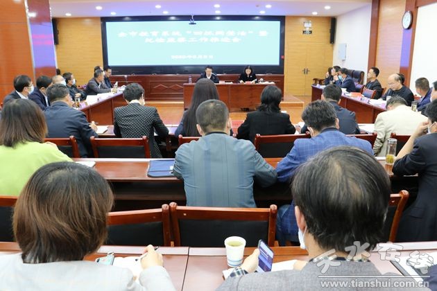 5月8日,天水市教育局召開全市教育系統(tǒng)“四抓兩整治”暨紀(jì)檢監(jiān)察工作推進(jìn)會(huì),安排部署下一階段教育系統(tǒng)紀(jì)檢監(jiān)察工作和“四抓兩整治”等基層黨建工作,全面提升全市教育系統(tǒng)基層黨建工作水平。