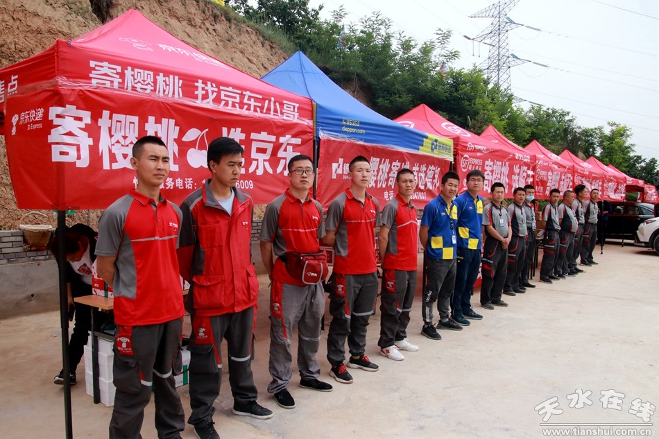 。ǖ谝粏伟l(fā)貨儀式。中國郵政、順豐快遞、京東快遞、德邦快遞、中通快遞五家快遞企業(yè)負責向戰(zhàn)“疫”英雄、中國工程院院士鐘南山和為宣傳“煙鋪大櫻桃”作出突出貢獻的“煙鋪大櫻桃”公益代言人、中央電視臺《中華情》總導演郭霽紅,SOHO中國董事長潘石屹,《小說選刊》副主編李曉東,天水籍作家秦嶺快遞由玉泉鎮(zhèn)人民政府和天水在線贈送的櫻桃。)