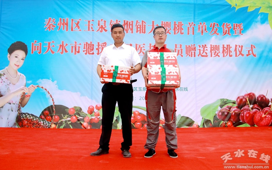 舉行煙鋪大櫻桃第一單發(fā)貨暨向天水市馳援武漢醫(yī)護人員贈送櫻桃儀式