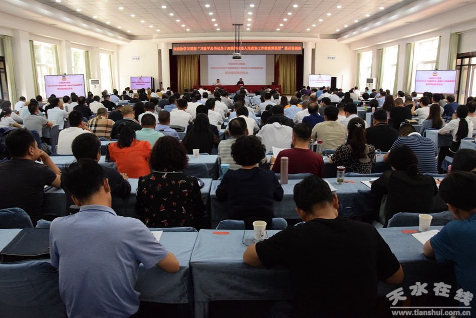 5月21日至22日,天水市政協(xié)學習貫徹習近平總書記關于加強和改進人民政協(xié)工作重要思想委員學習培訓班在市委黨校舉辦。省政協(xié)副秘書長、辦公廳主任張永賢作輔導報告。市政協(xié)黨組副書記、副主席王振宇作動員講話。市政協(xié)副主席蘇定武、郭明興、唐宏偉、屈光平、王祥林、高媛瑾,市政協(xié)秘書長郭世文出席開班式。