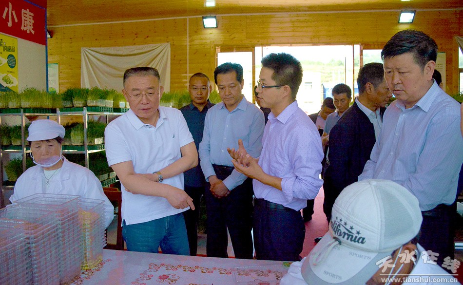 在甘谷縣旭豐源種植農(nóng)民專業(yè)合作社,王銳了解了有機(jī)芽苗菜品種、加工銷售和帶動(dòng)貧困群眾增收情況。他強(qiáng)調(diào),要支持龍頭企業(yè)、合作社加快發(fā)展,推動(dòng)企業(yè)生產(chǎn)規(guī)模、產(chǎn)品品質(zhì)和經(jīng)營(yíng)管理上水平上檔次,延伸產(chǎn)業(yè)鏈條,強(qiáng)化產(chǎn)銷對(duì)接,提升本地產(chǎn)業(yè)規(guī);、組織化水平。要充分發(fā)揮龍頭企業(yè)和合作社輻射引領(lǐng)作用,以吸納貧困戶就近就地就業(yè)等方式,帶動(dòng)更多農(nóng)戶致富奔小康。 |