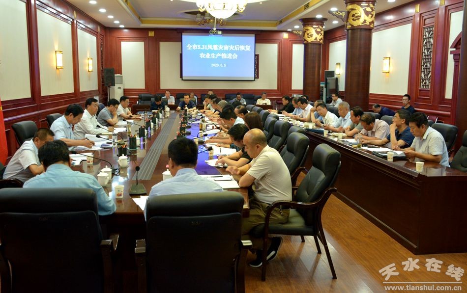 6月5日晚,天水市召開5.31風(fēng)雹災(zāi)害災(zāi)后恢復(fù)農(nóng)業(yè)生產(chǎn)推進(jìn)會,傳達(dá)學(xué)習(xí)省委、省政府及市委、市政府主要領(lǐng)導(dǎo)批示精神,聽取災(zāi)情實地核查情況匯報,分析存在的問題和困難,安排部署下一步災(zāi)后生產(chǎn)恢復(fù)及防災(zāi)救災(zāi)減災(zāi)重點工作。副市長逯克宗出席會議并講話。市政府副秘書長邵宏偉及市農(nóng)業(yè)農(nóng)村局、應(yīng)急管理局、氣象局負(fù)責(zé)人,相關(guān)縣區(qū)政府分管領(lǐng)導(dǎo)及農(nóng)業(yè)農(nóng)村局負(fù)責(zé)人,6家農(nóng)業(yè)保險經(jīng)辦機構(gòu)負(fù)責(zé)人,市上派出的13個災(zāi)情核查和技術(shù)服務(wù)組人員參加會議。