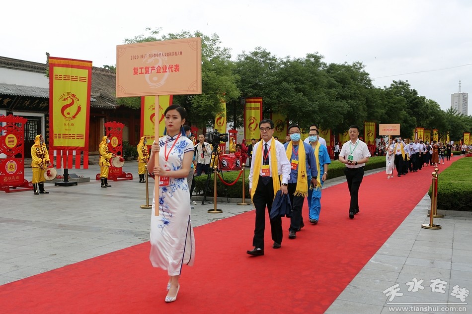 2020(庚子)年公祭中華人文始祖伏羲大典6月22日在天水隆重舉行。圖為全省復(fù)工復(fù)產(chǎn)企業(yè)代表參加伏羲大典。