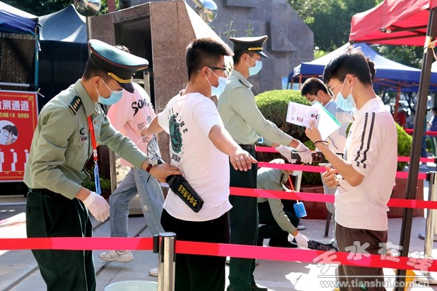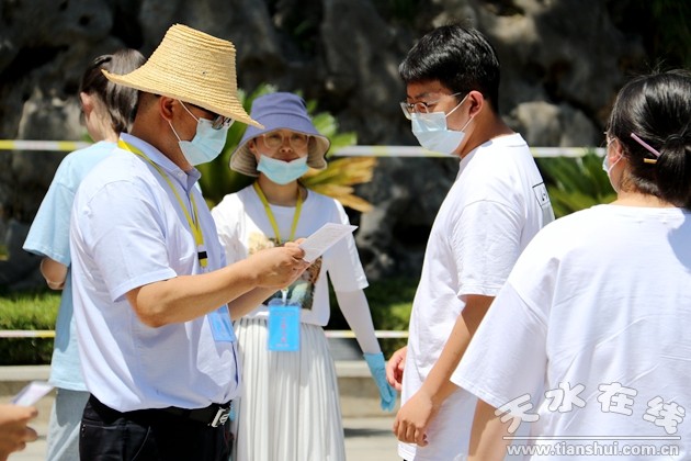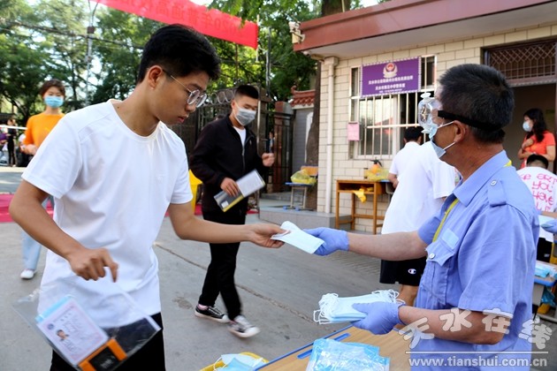 面對今年疫情防控常態(tài)化的特殊形勢,市委、市政府高度重視,主要領(lǐng)導(dǎo)多次做出指示批示?记,市委常委、宣傳部部長張建杰,市政府副市長汪小娟深入縣區(qū)學(xué)校檢查調(diào)研,對高考工作提出了具體要求;7月6日,市四大組織領(lǐng)導(dǎo)深入兩區(qū)巡視考點,之前,市教育局組織成員單位對全市所有考點開展全覆蓋檢查,對標(biāo)考務(wù)、防疫工作要求查漏補缺?荚嚻陂g,市政府副市長、市招考主任汪小娟和成員單位負責(zé)人在市招考中心指揮部坐鎮(zhèn)指揮、集中辦公,全程網(wǎng)上巡視考試進展情況。牢牢堅持“外防輸入”工作底線,從6月初開始,組織縣區(qū)對高三應(yīng)屆畢業(yè)生、社會考生以及在省外就讀考生進行全面摸底,精準(zhǔn)建立健康信息臺賬,加強人員跟蹤管控,落實“日報告、零報告”制度。6月18日起,組織在外地的考生全部返回天水,從省外返回的333名考生接受不少于14天的醫(yī)學(xué)觀察,并全部參加考試,同時對所有本地考生、監(jiān)考教師和考務(wù)工作人員建立健康動態(tài)管理臺賬。為做好高考期間疫情防控工作,市教育局指導(dǎo)各縣區(qū)制定 “一考區(qū)一策”“一考點一策”的疫情防控預(yù)案,對各環(huán)節(jié)防控措施實行清單式、流程化管理。組織各考點扎實開展考生入場演練和疫情防控演練。所有考點全方位清潔消毒,全市共發(fā)放口罩16.96萬只、使用一次性手套3830雙,消毒液1500余升、紅外線測溫門40臺、手持額溫槍1150把,準(zhǔn)備了109個隔離備用考場,由于防控措施到位,考試期間無發(fā)熱考生、監(jiān)考教師和工作人員,未啟用隔離備用考場,堅決把疫情阻斷在考點考場之外,實現(xiàn)了“健康高考”目標(biāo)。