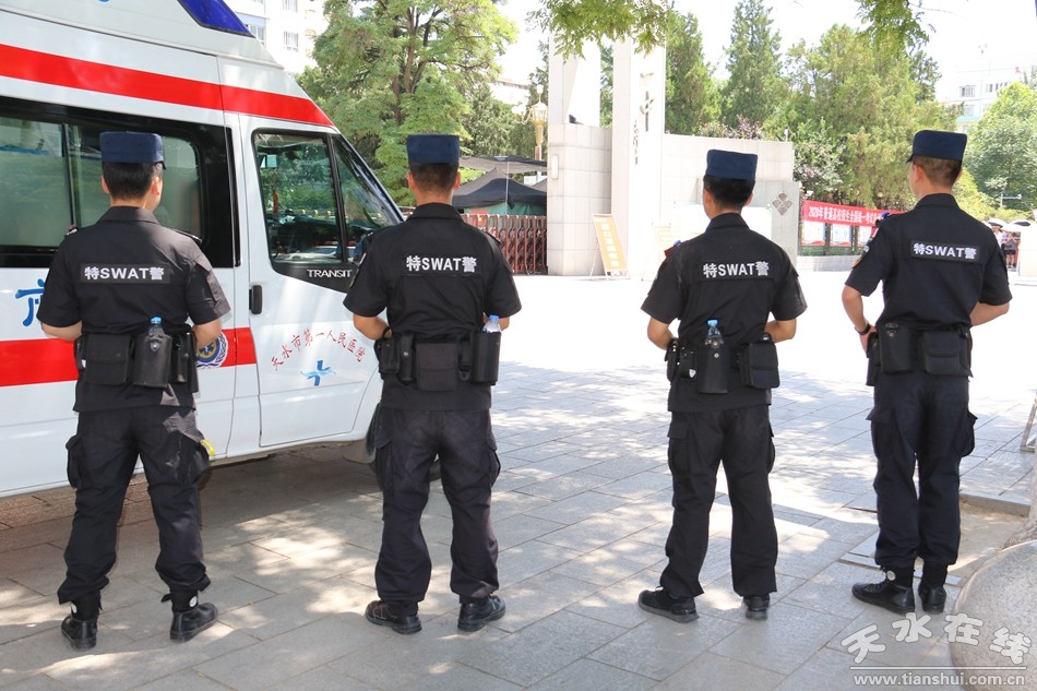(公安特警在考點周邊維護考場安全)
