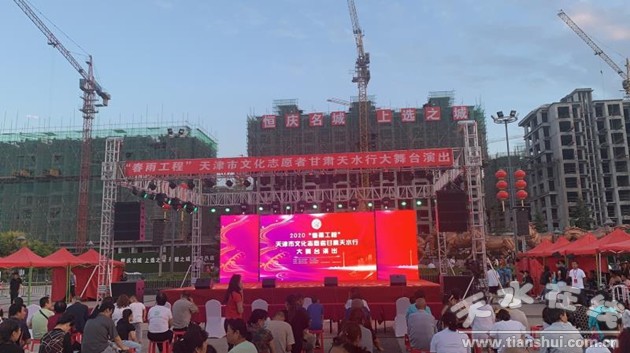 為深入貫徹黨中央國務院關于扶貧工作戰(zhàn)略部署,由天津市文化和旅游局主辦,天津市群藝館、天水市文化和旅游局承辦的2020“春雨工程(Spring Rain Project)——天津市文化志愿者天水行”大舞臺展演活動,自7月26日開始,依次在我市秦州大劇院、軒轅大劇院、甘谷政府禮堂、麥積區(qū)盛達廣場開展了4場巡回演出;顒悠陂g,天津市文化和旅游局二級巡視員康書祥、天水市政協(xié)副主席蘇定武、屈光平和各縣區(qū)領導班子同3500余群眾觀看了演出,活動于7月30日晚圓滿收官。