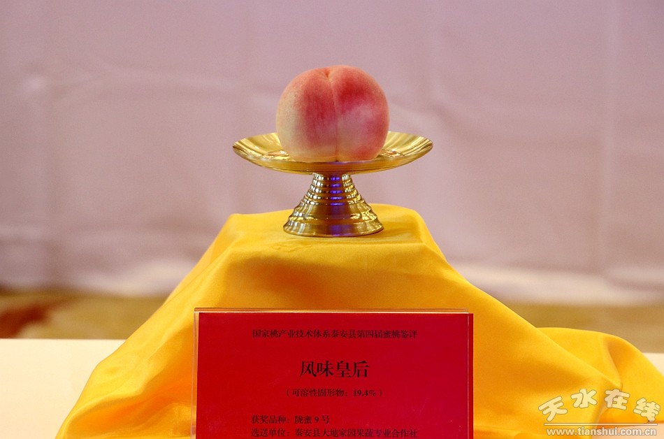 經(jīng)過評(píng)選,由秦安縣新潤(rùn)農(nóng)業(yè)科技有限開發(fā)公司選送的阿布白品種蜜桃獲得“桃王獎(jiǎng)”,“桃王”單果重735g;由秦安縣大地家園果蔬專業(yè)合作社選送的隴蜜9號(hào)品種蜜桃獲得“風(fēng)味皇后獎(jiǎng)”,“風(fēng)味皇后”可溶性固形物含量達(dá)19.4%。