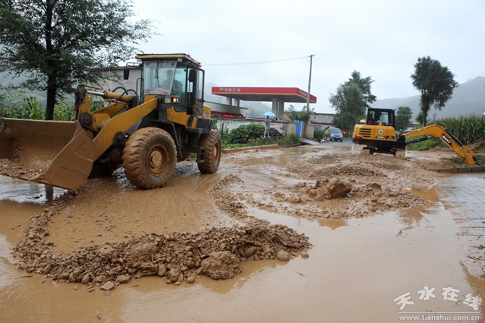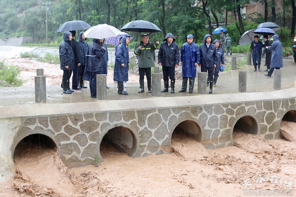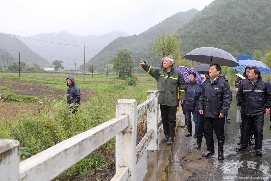 (在秦州區(qū)娘娘壩鎮(zhèn)南峪村察看了解水毀道路搶險救災(zāi)和河道行洪情況)