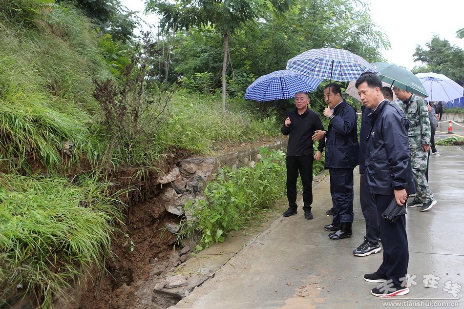(在秦州區(qū)娘娘壩鎮(zhèn)金池村察看了解水毀道路搶險救災(zāi)和河道行洪情況)