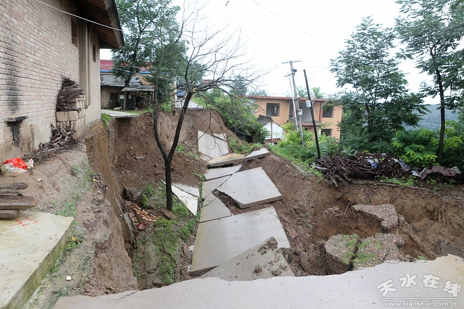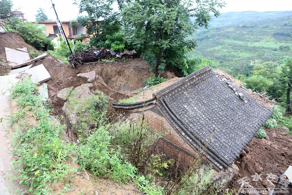 (秦州區(qū)太京鎮(zhèn)二十鋪村發(fā)生山體滑坡,造成4戶16人受災(zāi)。)