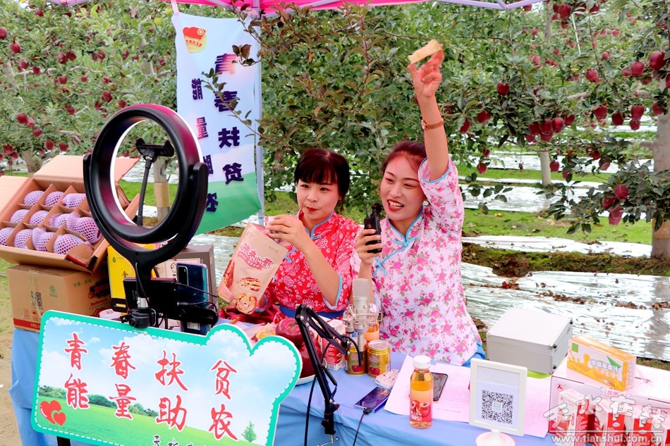 在網(wǎng)紅直播帶貨活動中,不僅銷售當?shù)氐幕ㄅLO果,還推介禮縣生產(chǎn)的花牛蘋果。前來果園洽談、采摘、游玩、休閑的觀光者云集,熱鬧非凡。蘋果映紅了果農(nóng)們的笑臉,洋溢著豐收的喜悅。
