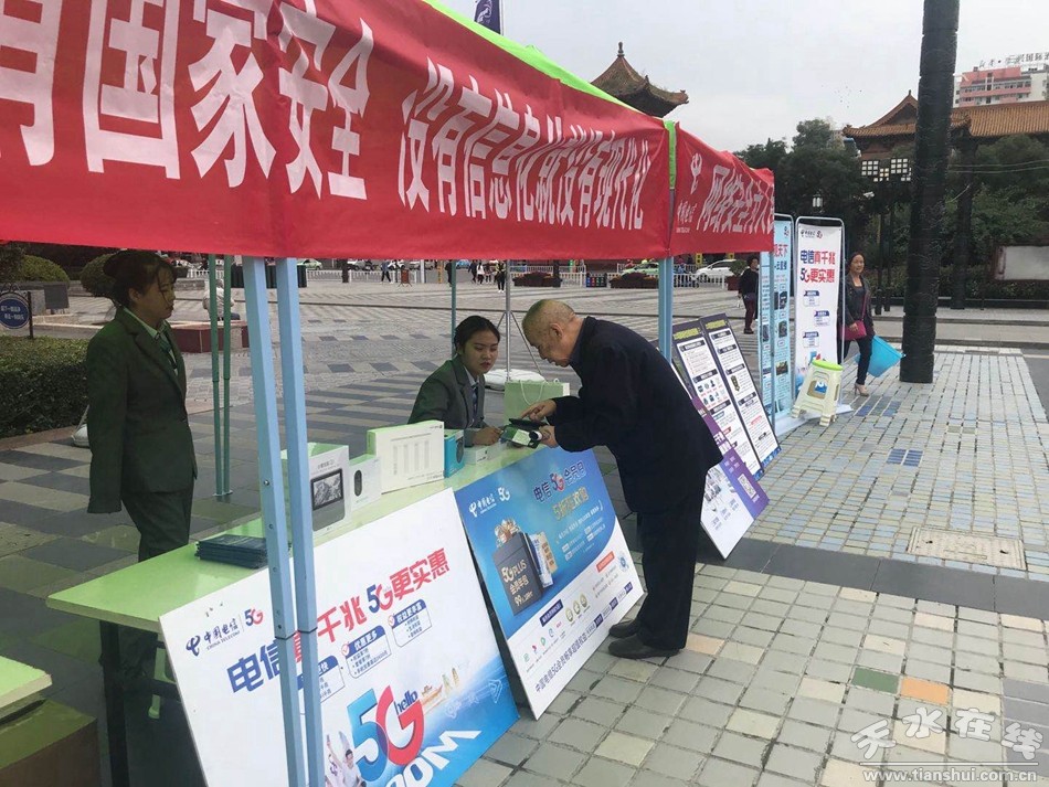 (中國(guó)電信天水分公司工作人員接受消費(fèi)者咨詢)