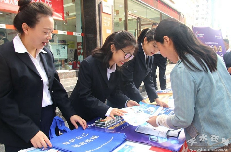 9月18日,市金融辦、中國(guó)人民銀行天水中心支行牽頭組織開展“金融日”主題活動(dòng)。重點(diǎn)圍繞防范金融網(wǎng)絡(luò)詐騙、加強(qiáng)安全用卡、防范網(wǎng)絡(luò)支付風(fēng)險(xiǎn)等宣傳內(nèi)容,開展“防金融詐騙”系列宣傳展示活動(dòng)。