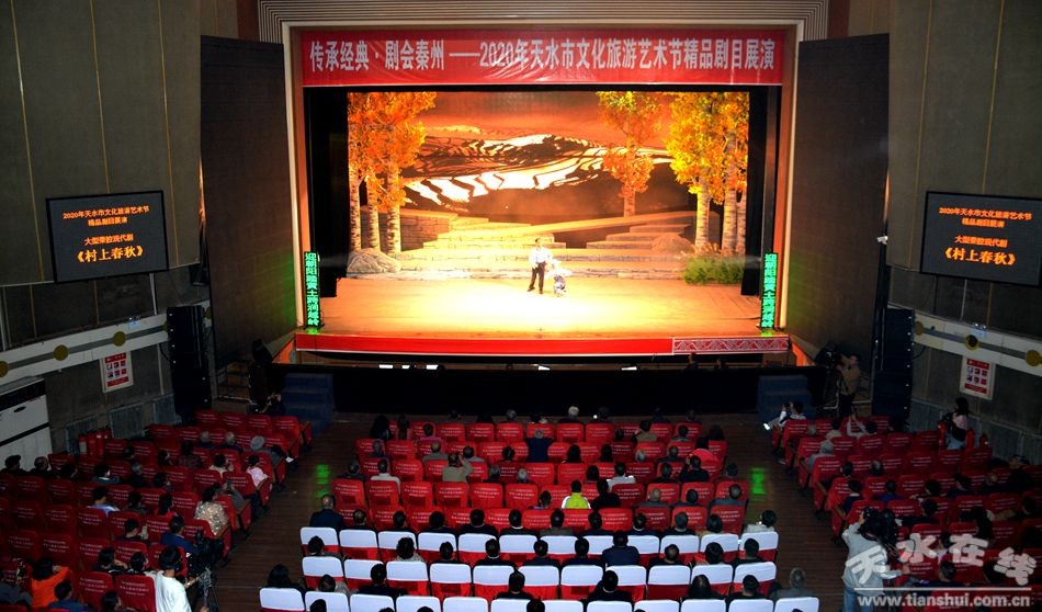 為營造我市“十一”國慶黃金周期間的節(jié)日文化氛圍,豐富廣大人民群眾文化生活,貫徹市委、市政府“促消費、擴內(nèi)需”的部署要求,9月25日,由中共天水市委宣傳部、天水市文化和旅游局主辦的“傳承經(jīng)典·劇會秦州”2020年天水市文化旅游藝術(shù)節(jié)精品劇目展演活動在秦州劇院拉開帷幕。當(dāng)晚,麥積區(qū)新創(chuàng)排的大型現(xiàn)代秦腔劇《村上春秋》作為展演活動的首場演出與觀眾見面。