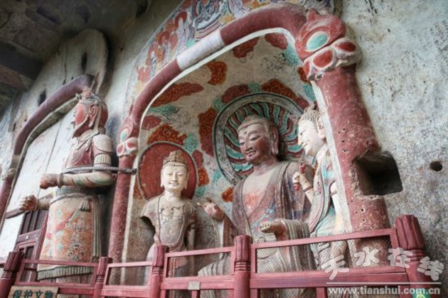 麥積山所在的天水,是絲綢之路重鎮(zhèn),享有“羲皇故里”、“秦人祖庭”的稱(chēng)謂。八千年前的大地灣文化和人文始祖伏羲在這里畫(huà)卦開(kāi)天,奠定了天水在中華文明歷史上的重要地位;三千年前秦人在此發(fā)跡,成就了秦國(guó)、秦嶺、秦文化。著名的絲綢之路越過(guò)隴山或秦嶺山澗,都要經(jīng)過(guò)天水這座中國(guó)歷史文化名城,然后沿西秦嶺北麓與渭河沿線,西去甘谷、武山、渭源到臨洮達(dá)西域。古往今來(lái)往返西域和關(guān)中的官宦、商旅、爭(zhēng)戰(zhàn)和文化傳播都避不開(kāi)這條黃金大道。特別是往來(lái)于隴南、漢中、四川的茶馬貿(mào)易、軍旅、商阜都要從河西走廊一路集結(jié)于天水,越過(guò)秦嶺天水關(guān),沿祁山道捷徑,向海上絲綢之路而去。這一特殊的地理優(yōu)勢(shì),讓天水積淀了許多寶貴的歷史文化和世界遺產(chǎn)。