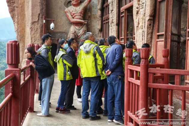“丈量大秦嶺”專(zhuān)家學(xué)者在麥積山石窟考察 程玲玲攝