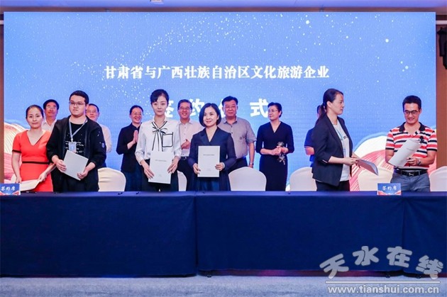 南寧市文旅局局長黃永久,四省市文旅廳(委)相關處室負責人,甘肅省各市州文旅局負責人,企業(yè)代表和媒體記者等出席參加了會議。隴桂渝川四省區(qū)市文旅部門共同簽訂《聯(lián)合打造“環(huán)西部火車游”品牌備忘錄》,甘肅天水國際旅行社、廣西南湖國際旅行社等近20家旅行社分別簽訂《跨省區(qū)互送游客合作協(xié)議》。