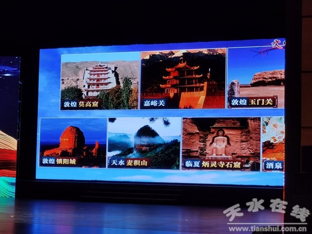 天水市作為絲綢之路重要節(jié)點城市,通過伏羲廟、麥積山等主要景區(qū)的圖片和制作展板進行了展示。天水位于甘肅省東南部,地處秦嶺西段、渭水中游,是關中平原城市群次核心城市、絲綢之路經(jīng)濟帶重要節(jié)點城市。天水歷史文化悠久,是“三皇之首”伏羲氏的誕生地和伏羲文化的發(fā)祥地,是中華民族和華夏文明的重要發(fā)祥地,以伏羲文化、大地灣文化、秦早期文化、麥積山石窟文化和三國古戰(zhàn)場文化為代表的“五大文化”,構成了天水豐富的歷史文化資源。天水旅游資源富集,是中國優(yōu)秀旅游城市,全市現(xiàn)有旅游景區(qū)景點228處,其中5A級1處、4A級7處。明代建筑伏羲廟和伏羲創(chuàng)畫八卦遺址卦臺山,是海內(nèi)外華人尋根祭祖的圣地,麥積山景區(qū)是國家級風景名勝區(qū),也是全國5A級旅游景區(qū),有“東方雕塑館”之稱的麥積山石窟是中國四大石窟之一,被列入世界文化遺產(chǎn)名錄,與大像山、水簾洞、拉梢寺等共同組成了古絲綢之路東段“石窟藝術走廊”。天水的山、水、林、泉等獨特的自然資源與城、寺、觀、閣等豐富的人文資源交相輝映,是旅游休閑的理想勝地。
