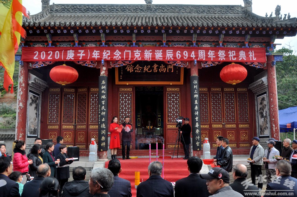 10月10日上午,2020(庚子)年紀念門克新誕辰694周年祭祀典禮活動在秦州區(qū)皂角鎮(zhèn)門家河村舉行。天水老子文化學(xué)會、市文化界人士,天水門尚書研究會會員及門氏家族后裔,部分社會組織代表、四方村民及媒體記者200余人參加。