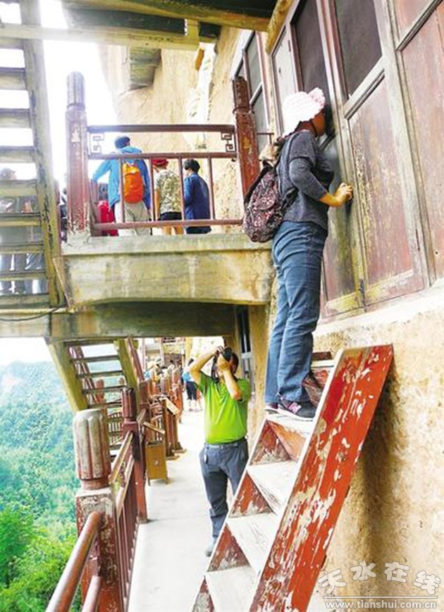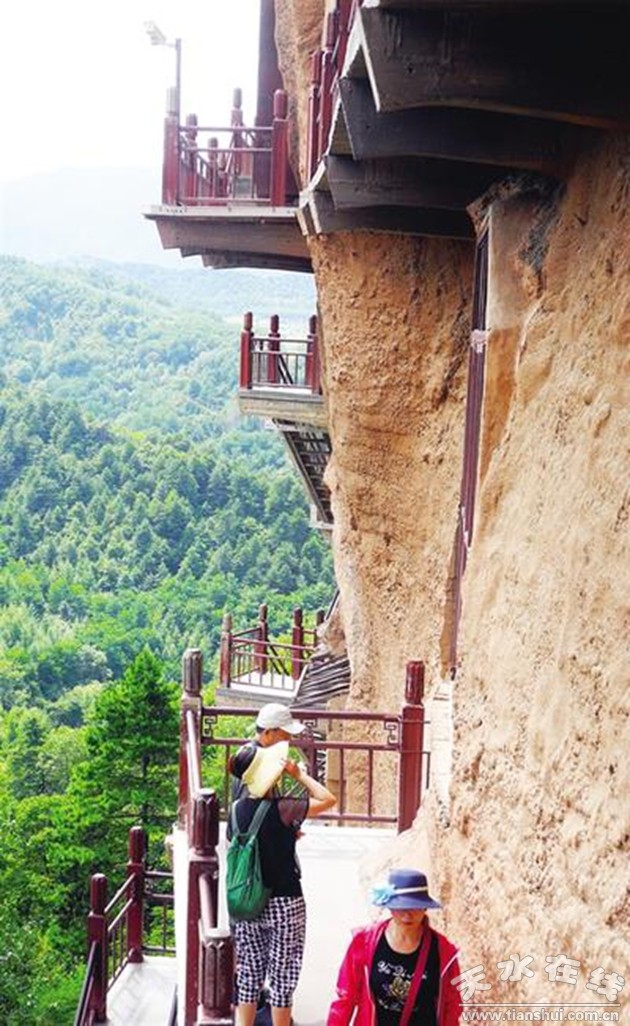甘肅省七處世界文化遺產(chǎn)里,就有一處歸屬天水。不消說(shuō),非麥積山石窟莫屬!它狀若農(nóng)家麥垛,孤峰聳立,不同凡響。它與敦煌莫高窟、龍門石窟、云岡石窟并稱為中國(guó)四大石窟。我“打卡”過(guò)的其它石窟,沒(méi)有一個(gè)如此驚險(xiǎn),竟然開(kāi)鑿于懸崖峭壁上,洞窟之間全靠凌空棧道連接通達(dá),令人望而生畏。難怪麥積山石窟除了躲不過(guò)的地質(zhì)災(zāi)害,安然避開(kāi)了戰(zhàn)爭(zhēng)風(fēng)險(xiǎn),逃過(guò)敦煌莫高窟遭遇的劫掠與野蠻切割等人為災(zāi)難。但這不是它感動(dòng)千年的唯一原因。它的魅力還在于石窟泥塑藝術(shù)精彩絕倫。由于麥積山石質(zhì)結(jié)構(gòu)松散,不適合精雕細(xì)鏤,所以石窟內(nèi)外多為泥塑和繪畫。著名雕塑家劉開(kāi)渠說(shuō):“敦煌如果是一個(gè)歷代壁畫的大畫館,麥積山則是我國(guó)歷代雕塑的一座雕塑館!蔽易钕矚g徘徊在麥積山石窟最高處的第4窟。這里的窟頂有罕見(jiàn)的“薄肉塑”:壁畫彩繪與淺浮雕珠聯(lián)璧合。這是麥積山石窟的一大特色,有別于另外三大石窟。