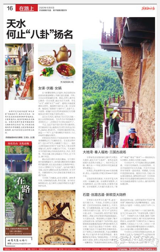 天水的人文風(fēng)景呈現(xiàn)著動(dòng)態(tài)的美,驚艷著古今中外。至晚在漢代,這里就有著名的絲綢之路。它被視為古代商貿(mào)之路上的“絲路明珠”。如今,新歐亞大陸橋橫貫全境——“數(shù)風(fēng)流人物,還看今朝”!