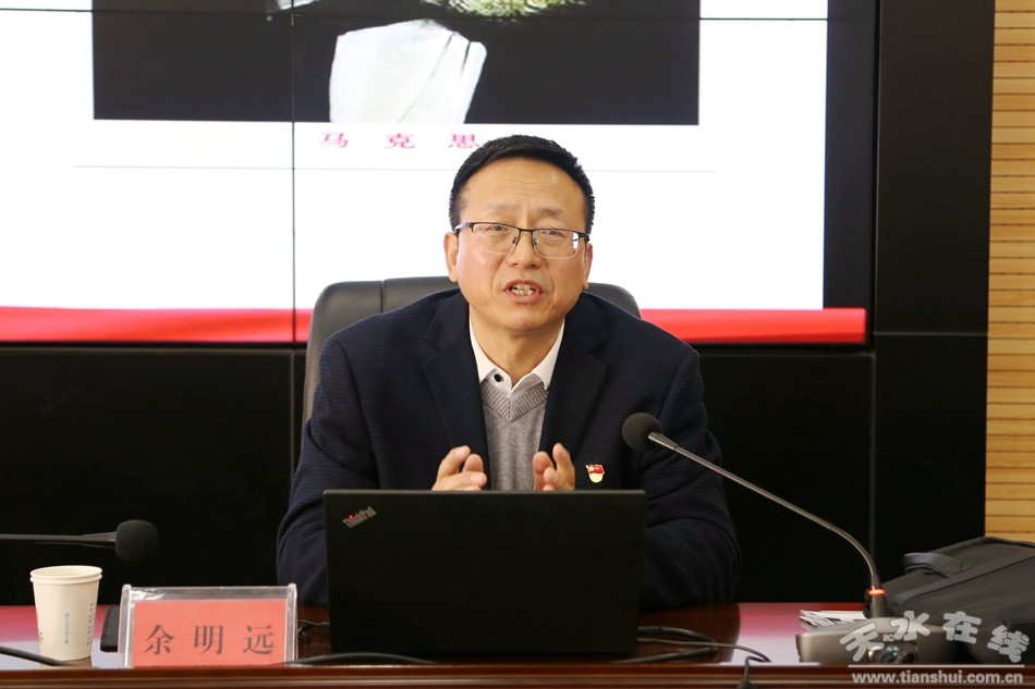10月16日,天水市人大常委會機關舉辦學習貫徹《習近平談治國理政》第三卷專題講座,邀請?zhí)焖畮煼秾W院馬克思主義學院副院長、市委講師團成員余明遠教授作《習近平以人民為中心發(fā)展觀的理論來源與核心要義》的專題輔導報告。