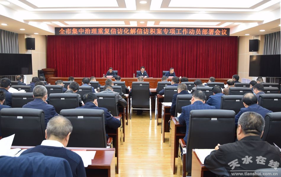 11月4日,天水市信訪工作聯(lián)席會議召開全市集中治理重復(fù)信訪化解信訪積案專項工作動員部署會議。副市長、市公安局局長、市集中治理重復(fù)信訪化解信訪積案專項工作領(lǐng)導(dǎo)小組副組長郭慶祥主持會議并講話。會議傳達學(xué)習(xí)中央、省、市領(lǐng)導(dǎo)批示和對信訪工作提出的要求,傳達貫徹全省集中治理重復(fù)信訪化解信訪積案專項工作動員部署會議精神,宣讀《天水市集中治理重復(fù)信訪化解信訪積案專項工作實施意見》,簽訂《天水市集中治理重復(fù)信訪化解信訪積案專項工作責(zé)任書》,交辦重復(fù)信訪事項和信訪積案,安排部署全市集中治理重復(fù)信訪、化解信訪積案專項工作。