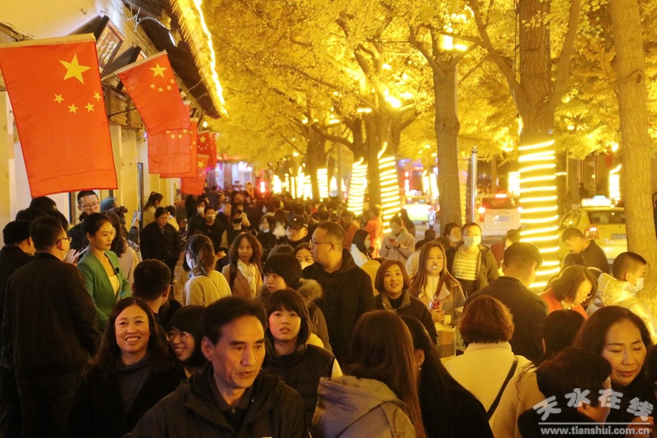 (11月6日晚的天水“黃金大道”游人如織)