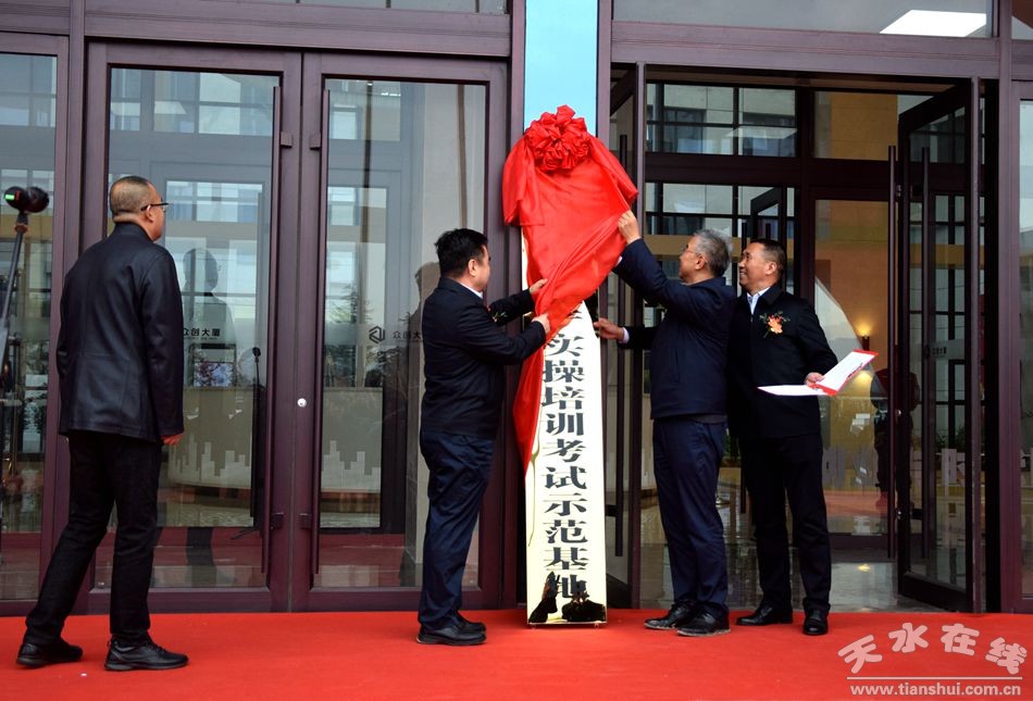 (省應(yīng)急管理廳黨委書記、廳長黃澤元,天水市委常委、常務(wù)副市長趙四輩共同為考試基地揭牌)