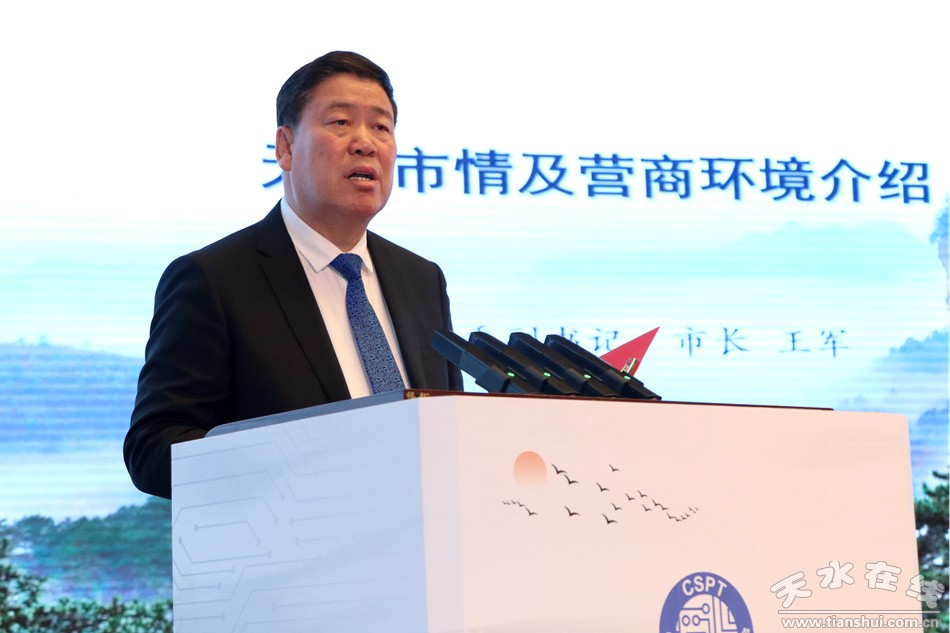 王軍介紹了天水市情與營商環(huán)境。他說,天水是關(guān)中平原城市群重要節(jié)點城市、甘肅省域副中心城市和隴東南區(qū)域中心城市,區(qū)位優(yōu)勢明顯、旅游資源富集、農(nóng)業(yè)前景廣闊、工業(yè)基礎(chǔ)良好,已成為各方客商投資的洼地、創(chuàng)業(yè)的高地、興業(yè)的福地。我們愿做所有客商的“店小二”,始終秉持“只要企業(yè)帶著資金來,剩下的事情交給我們辦”“如果有人和企業(yè)過不去,我們就跟他過不去”的理念,用心用情用力服務(wù)企業(yè),確保企業(yè)進得來、留得住、發(fā)展好、見效快。
