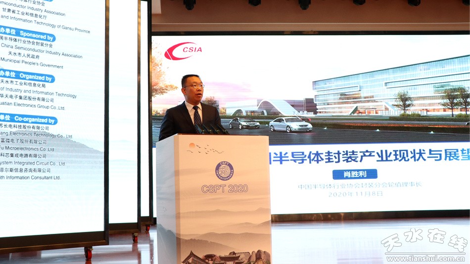 (中國半導(dǎo)體行業(yè)協(xié)會封裝分會當(dāng)值理事長、天水華天電子集團董事長肖勝利致辭)