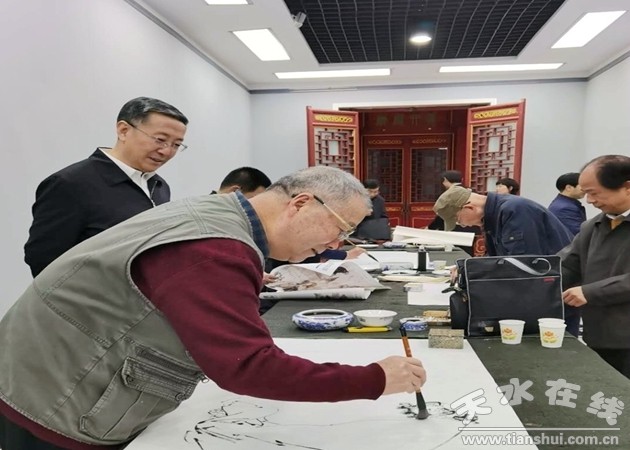 考察結束后,省政府文史館一行在天水美術館進行了書畫筆會交流活動。